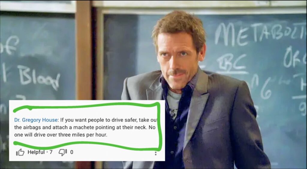 “If you wear a seatbelt in a car, you’re going to be incentivised to driver faster and more crazy, and then you’ll have a crash. So, in a way, better not to have the seat belt.”